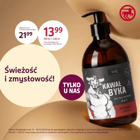 •  świeży i zmysłowy żel pod prysznic LAQ Kawał Byka     (w tym tygodniu tylko 13,99 zł);